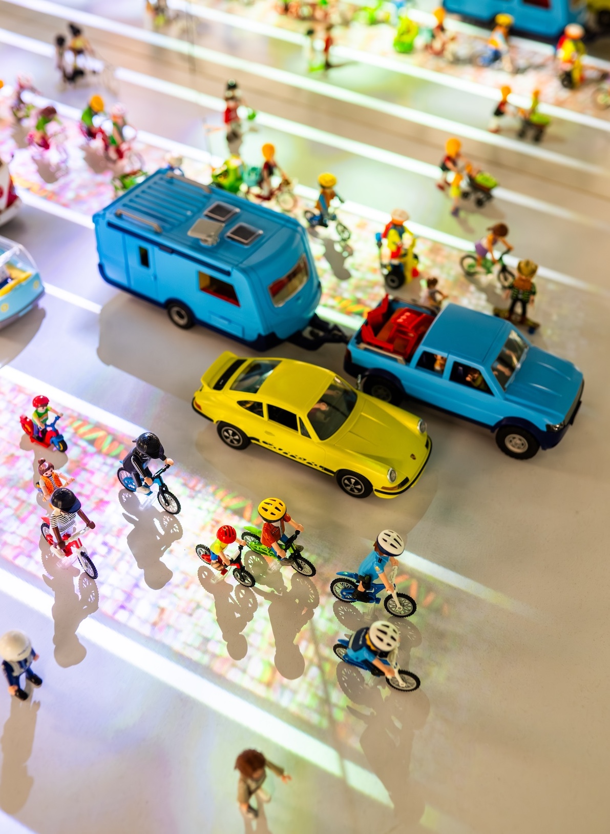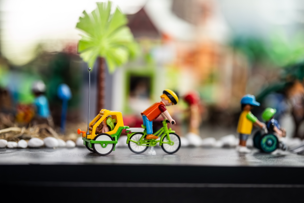 En Bici Lab se exponen los ejemplos de Vancouver, Zúrich, Singapur y Curitiba (Brasil). Además, lo hacen creando cicloramas con centenares de figuras de Playmobil para que sea más fácil de entender y de asimilar para el público familiar, con el objetivo es generar conciencia de movilidad en las futuras generaciones.